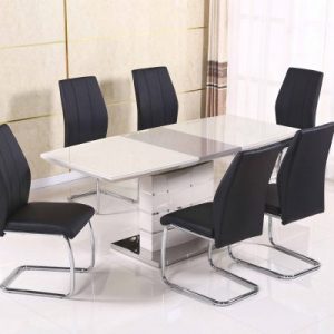 This calacatta dining table is the perfect addition to any home, exhibiting a stainless steel sleek curved base, it is a show-stopper. Fitted with an amazing white marble table top which is wonderful to the eye, is sure to add a unique look to your dining area.